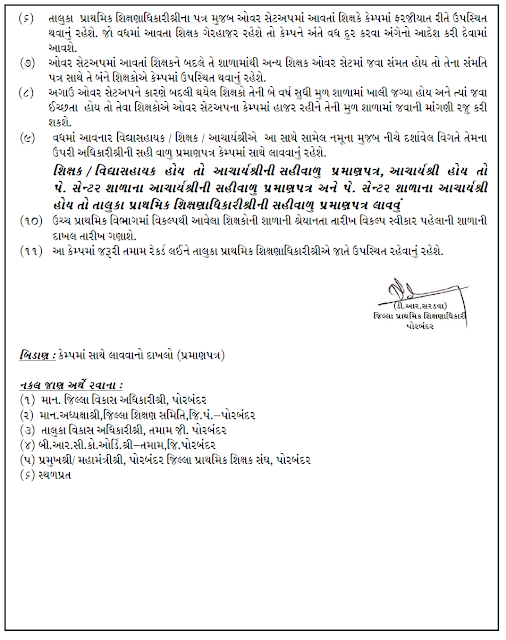 ઓવર સેટઅપ કેમ્પ પત્ર અને સાથે લાવવાનો દાખલો (Porbandar District ) ........!
